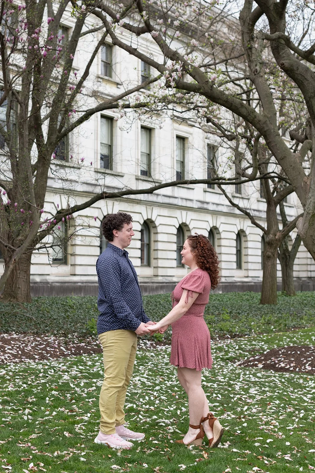 After weeks of strategizing, Whitten proposed to Alli by the Tidal Basin during D.C.’s Cherry Blossom Festival. They’d agreed they’d wait until after Alli finished med school, which Whitten honored to the letter - he waited only about two weeks after her graduation to pop the question. Just in case, Alli had been conveniently getting her nails done and getting dressed up for every outing for several weeks. Here are some favorite images from our time spent together in their first moments being *affianced.*