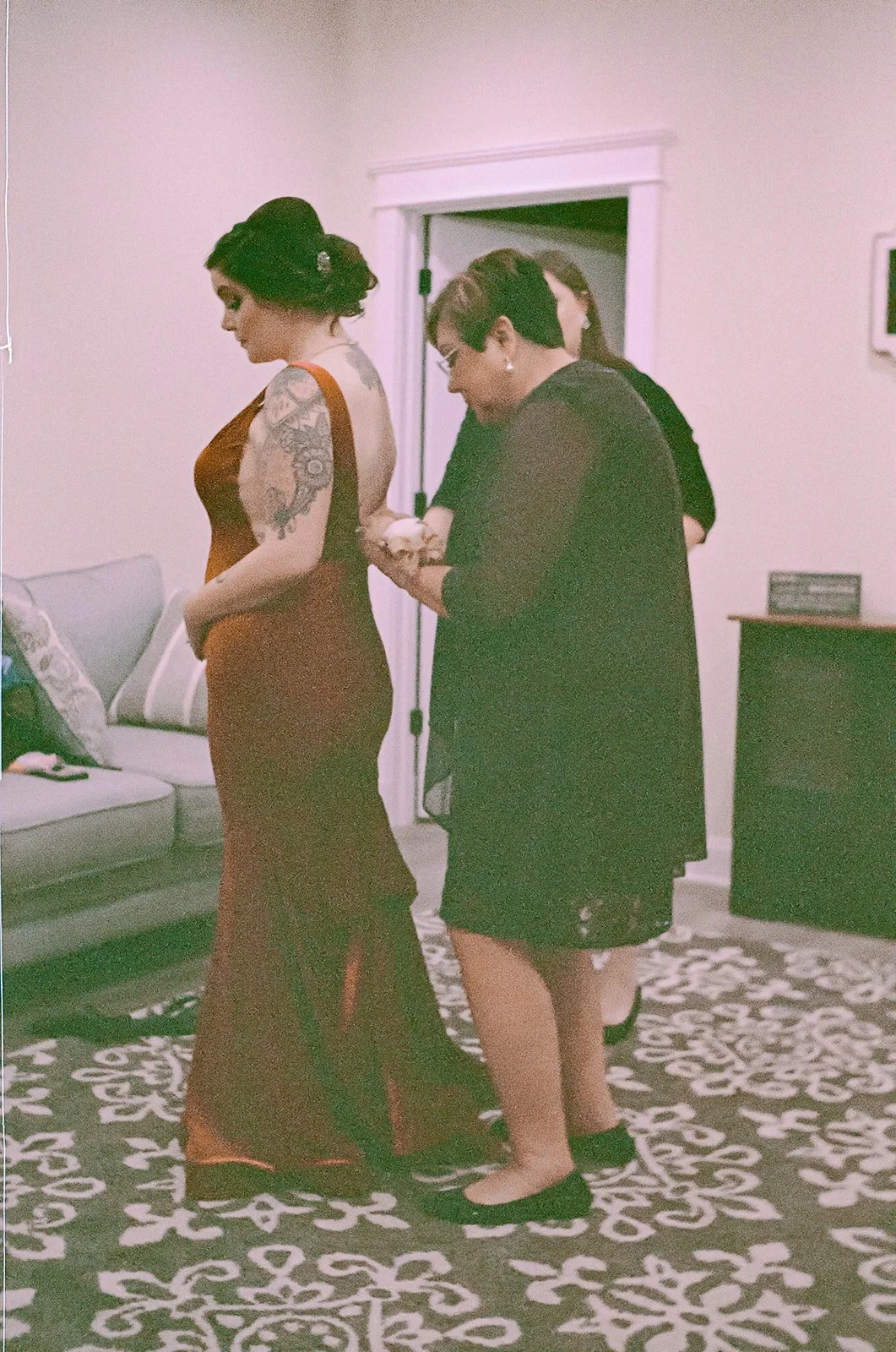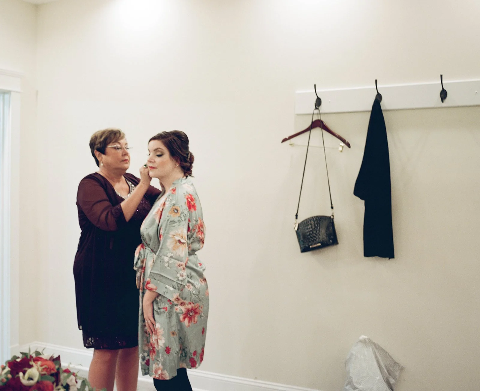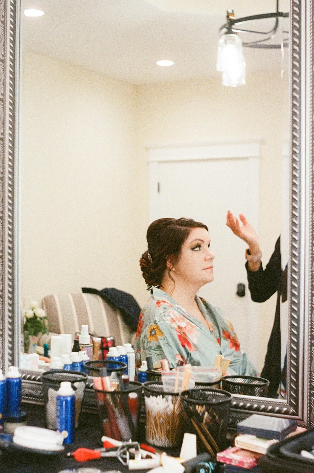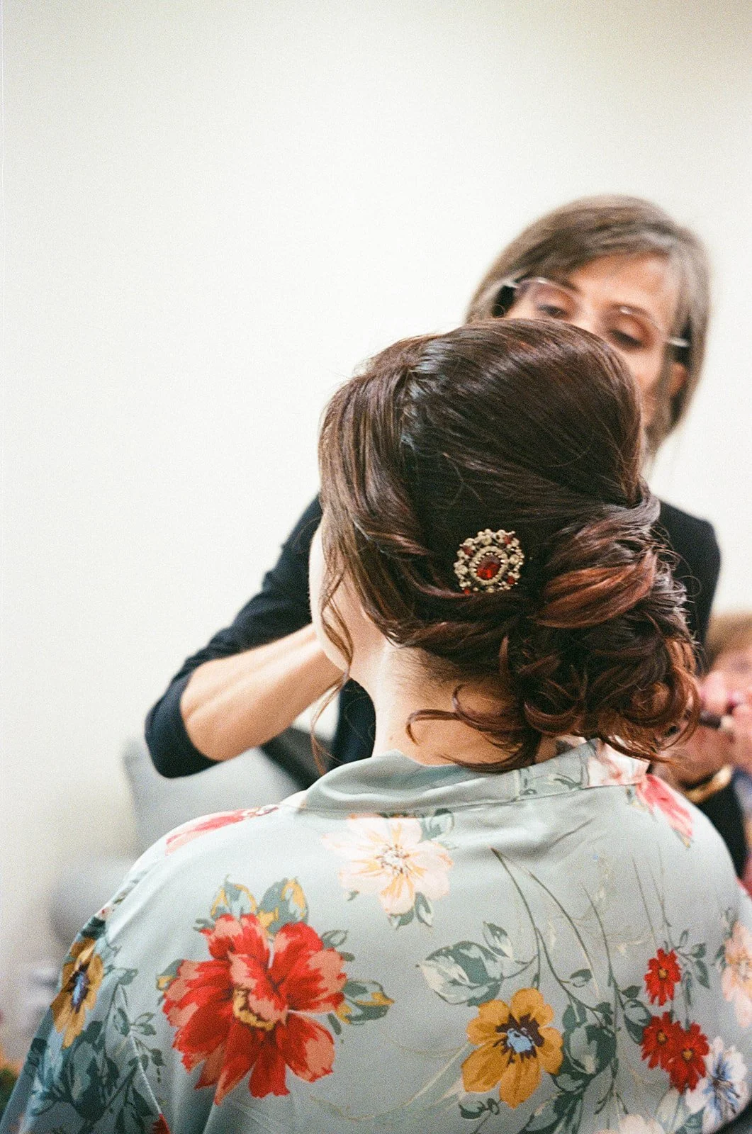 Phil had gotten hold of Stacey’s grandfather’s old film cameras and asked if we’d be willing to photograph her getting ready with them. We brought along the Hasselblad and Pentax, enjoying leaning into the slow mystery that comes along with shooting with antique cameras.