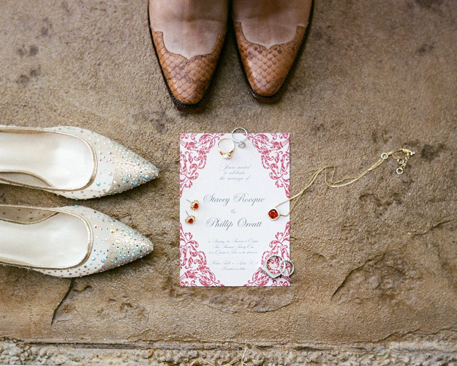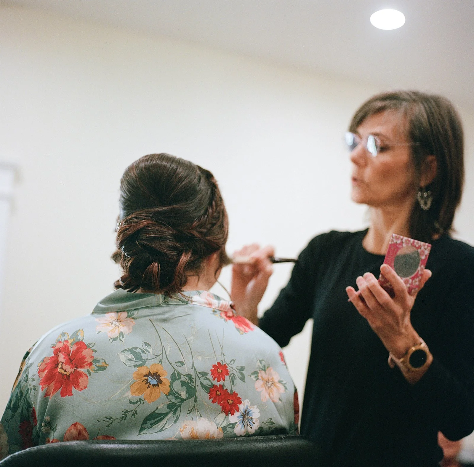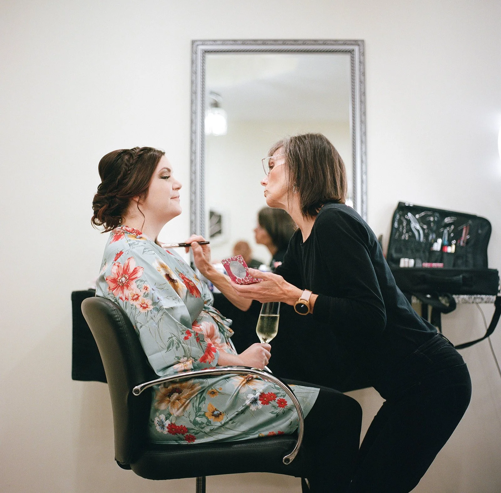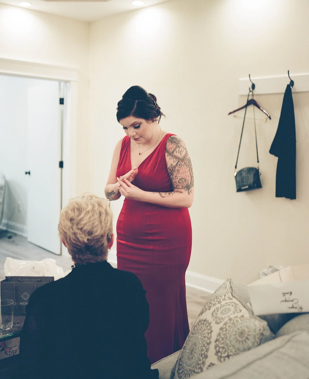 Phil had gotten hold of Stacey’s grandfather’s old film cameras and asked if we’d be willing to photograph her getting ready with them. We brought along the Hasselblad and Pentax, enjoying leaning into the slow mystery that comes along with shooting with antique cameras.